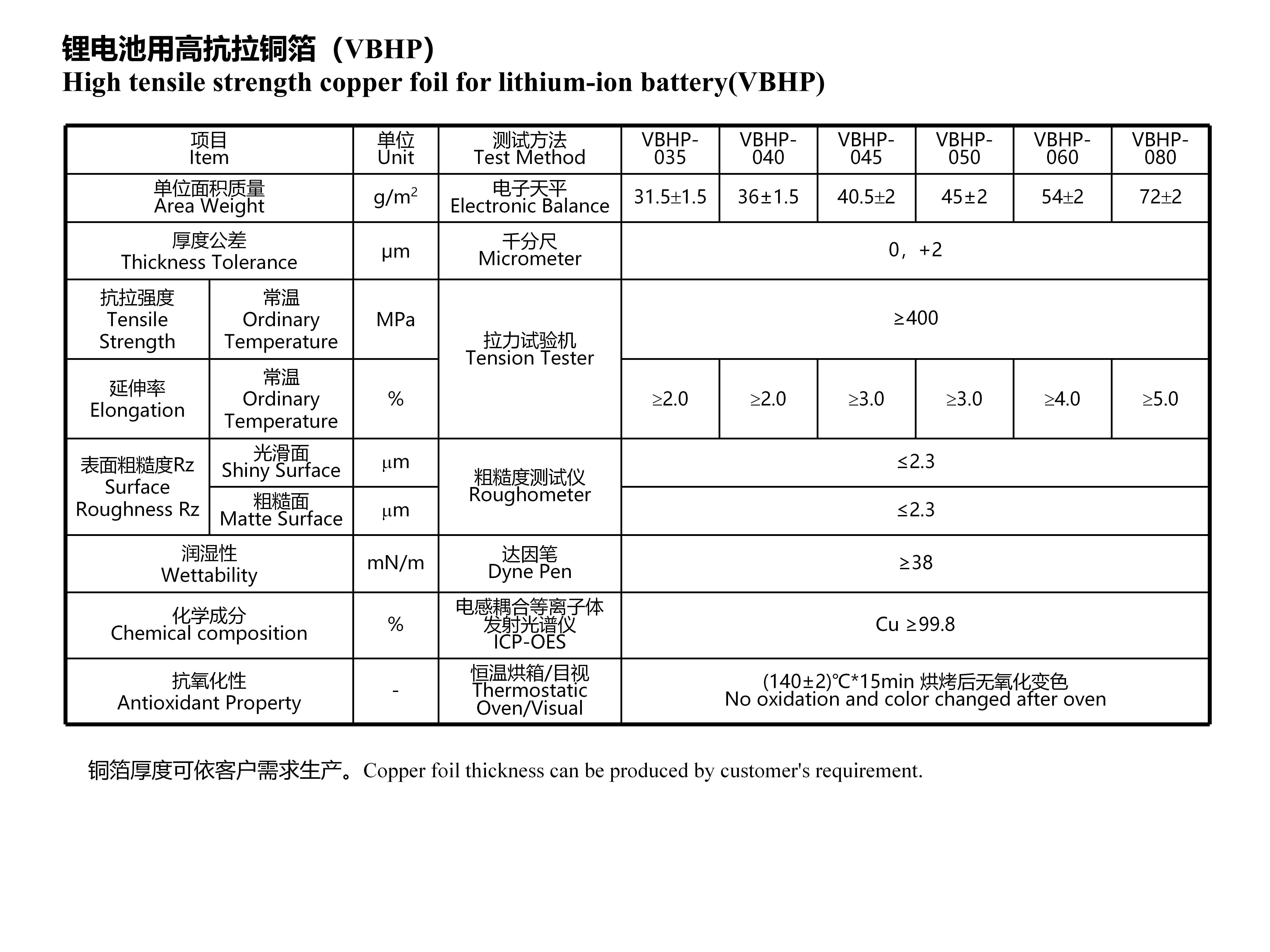 High tensile strength copper foil for lithium-ion battery(VBHP)