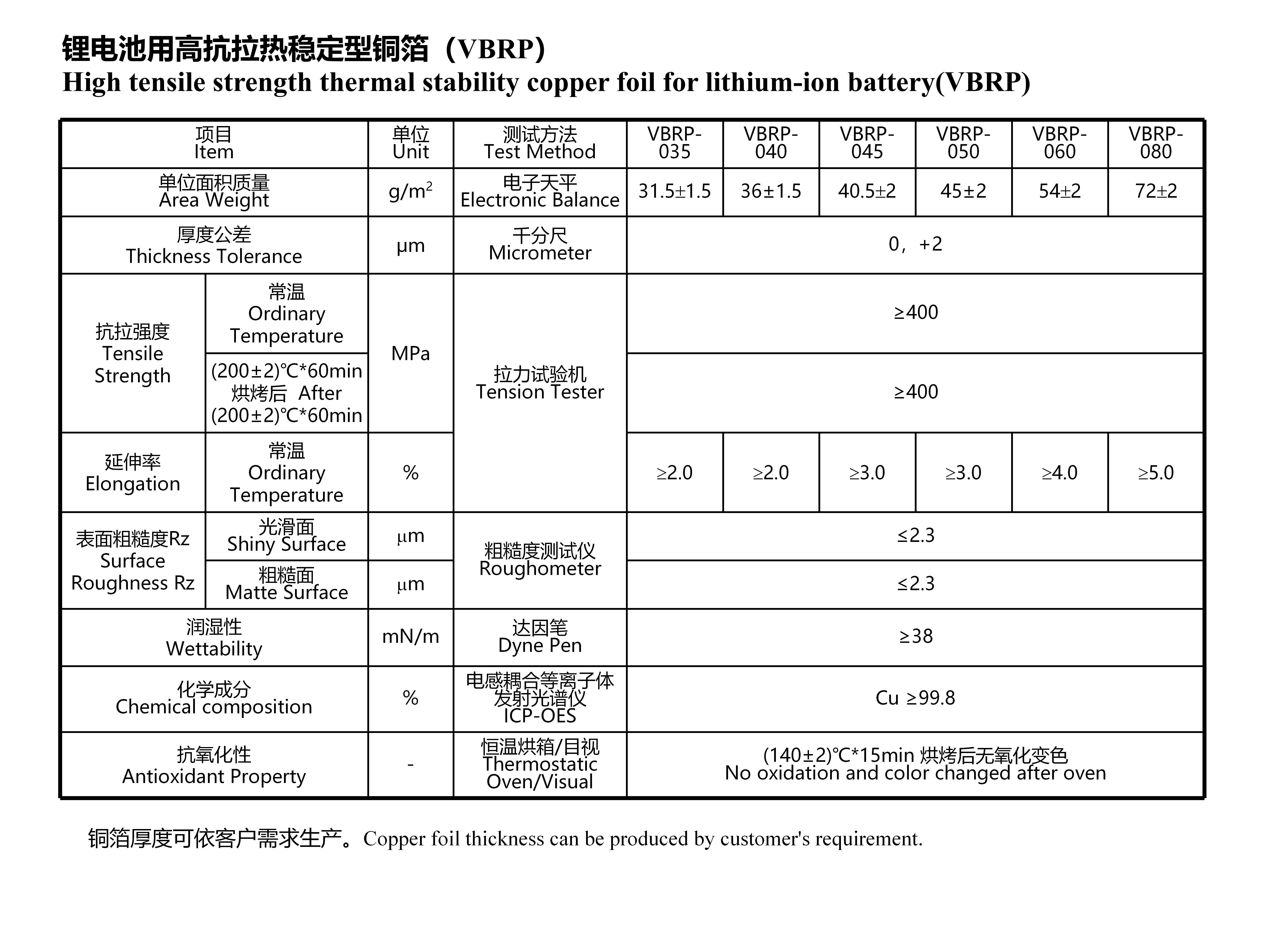 High tensile strength thermal stability copper foil for lithium-ion battery(VBRP)