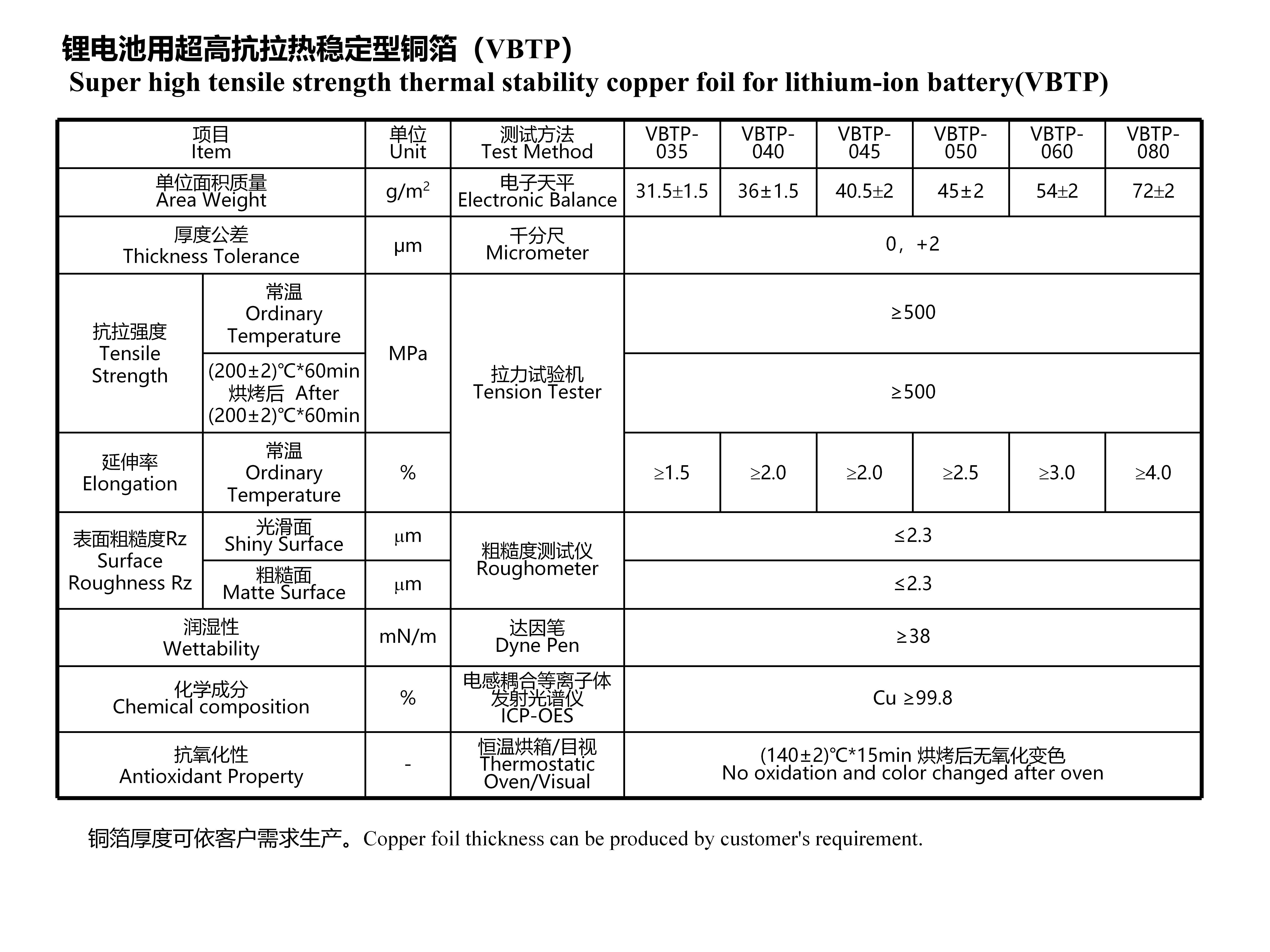 Super high tensile strength thermal stability copper foil for lithium-ion battery(VBTP)