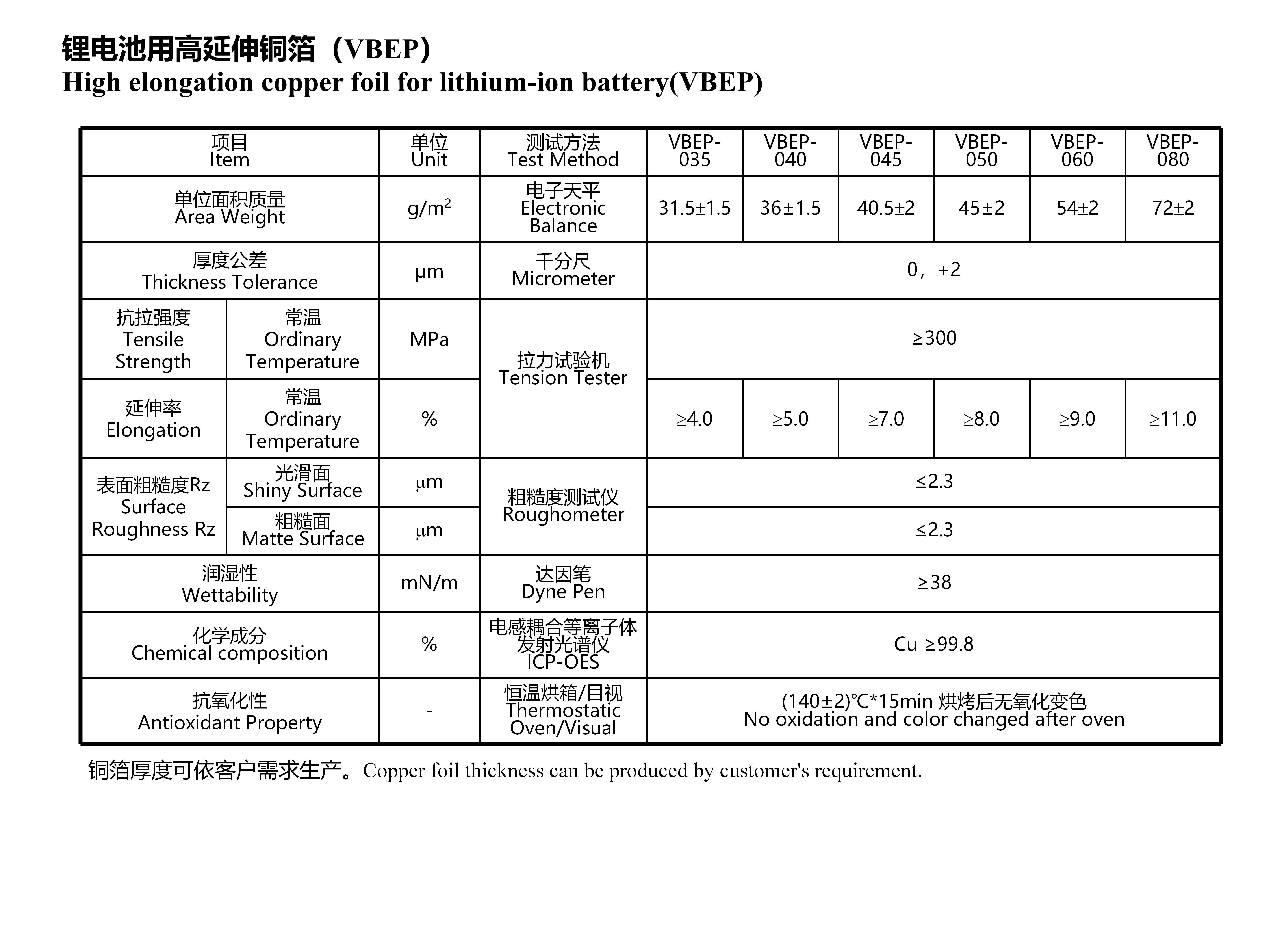 * Copper foil thickness can be produced according to customer needs