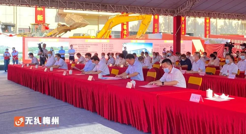 市委副書記、市長王暉;廣東盈華電子科技有限公司董事長李劍明;中國農業銀行股份有限公司廣東省分行副行長王新林;市委常委、副市長,梅江區委書記陳金鑾;市政府副市長蔣鯤;中國電子材料行業協會電子銅箔材料分會秘書長冷大光;深圳盛屯集團有限公司董事長、總裁陳東;廣東盈華電子科技有限公司總經理李遠泰參加活動。活動由梅江區委副書記、區長鐘秀堂主持。